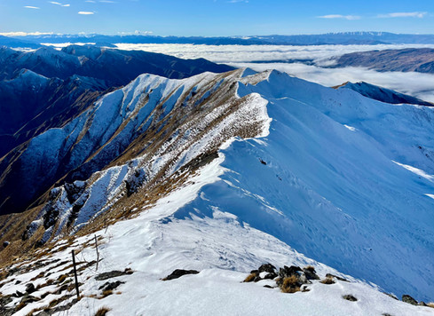 Field Notes: Fern Burn makes for a pleasant overnight destination on this route, otherwise it's a big day. To climb Middle Peak, take the obvious leading ridge directly behind the hut and follow it south towards Pt 1792. Head east over Pt 1810 and summit Middle Peak. Continue along the ridge over Pt 1752 and ending at Pt 1650. Take the ridge down to the stream, eventually climbing in a northerly direction out of the stream to avoid scrub. Drop back to the stream at any convenient location, fight some scrub and end at the hut.